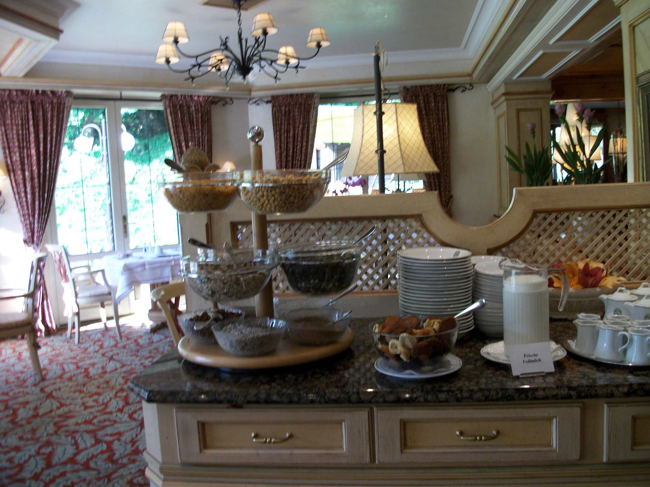 Müslis, Trockenobst, Milch, Teekännchen usw.