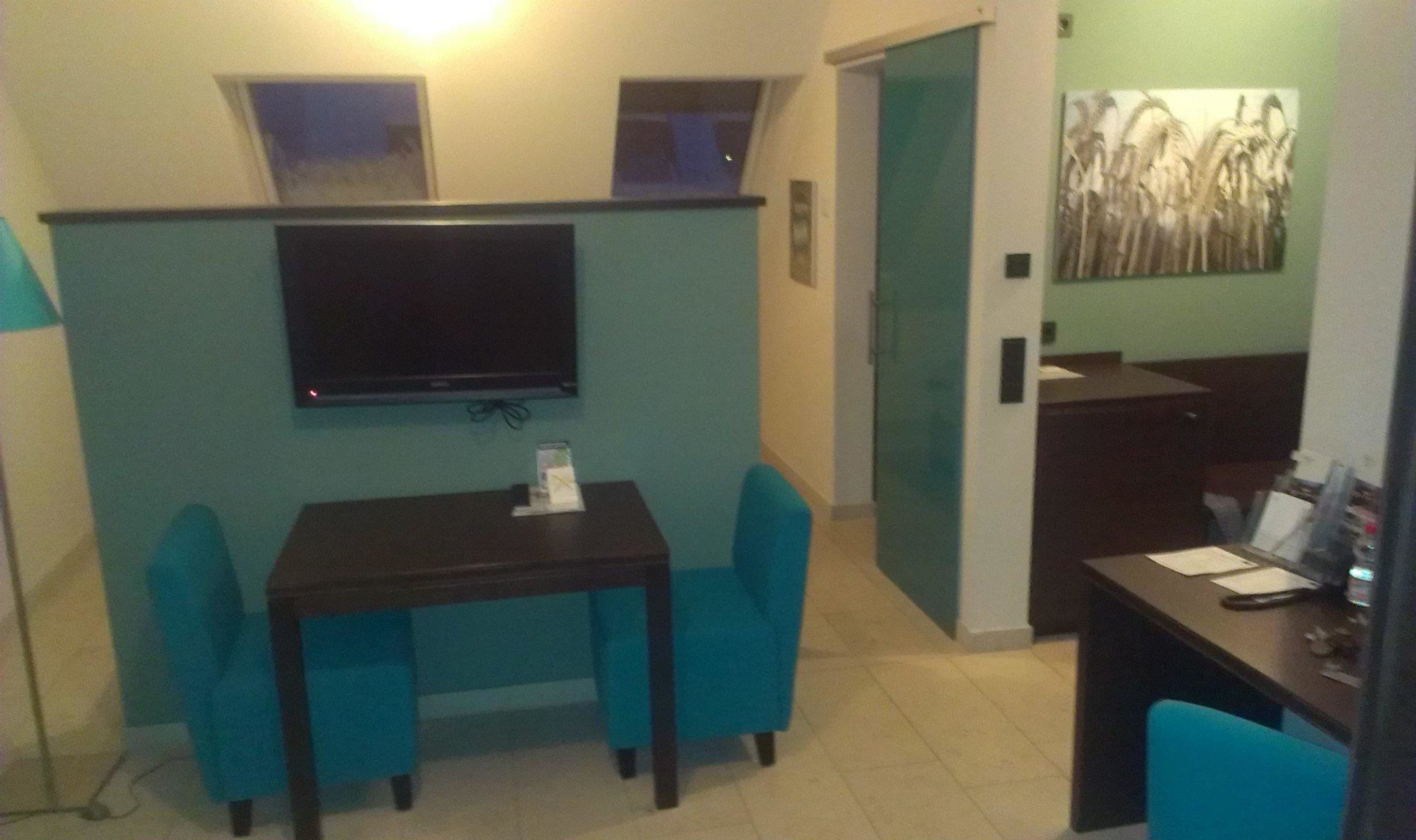 "Fernsehecke", dahinter befindet sich das Bett