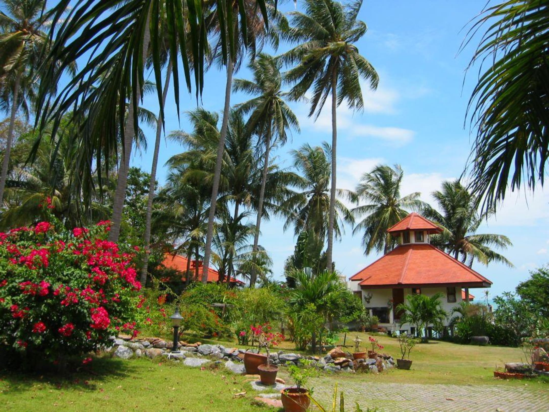 Bungalow mit GartenDas ist einer der Bungalows, direkt über dem Meer gelegen in wunderschöner Gartenanlage