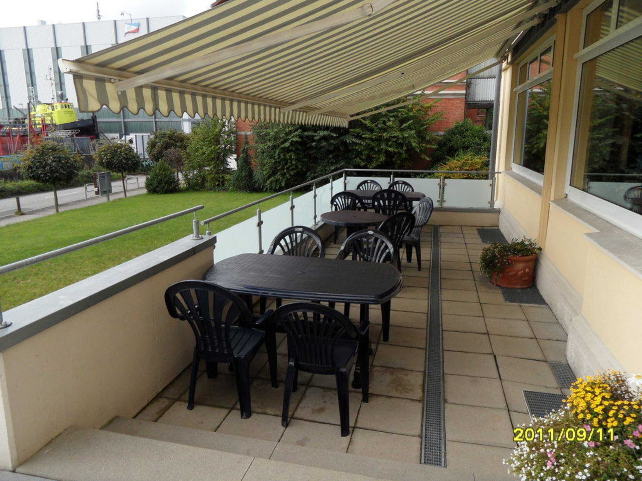 Sitzgelegenheit vor dem Hotel