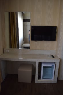 Schreibtisch und TV im Zimmer.