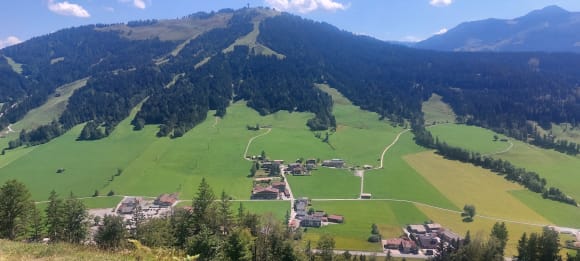AusblickDas Hotel liegt an der Wegkreutzung , linke Ecke , man kann den Tennisplatz oberhalb erkennen.