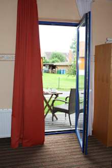 Blick vom Zimmer auf die Terrasse
