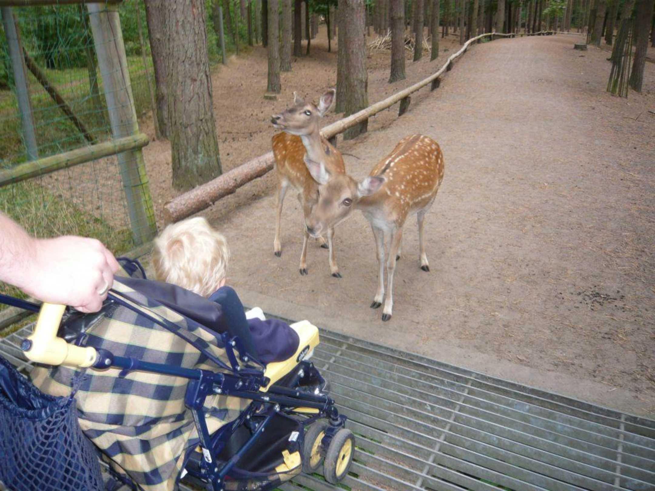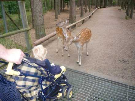 Empfangskomitee im Dammwild Streichelgehege. Man kann die Tiere aus der Hand füttern. Innerhalb von wenigen Minuten hat man 10-20 Tiere um sich. Ein echtes Erlebnis für Kinder.