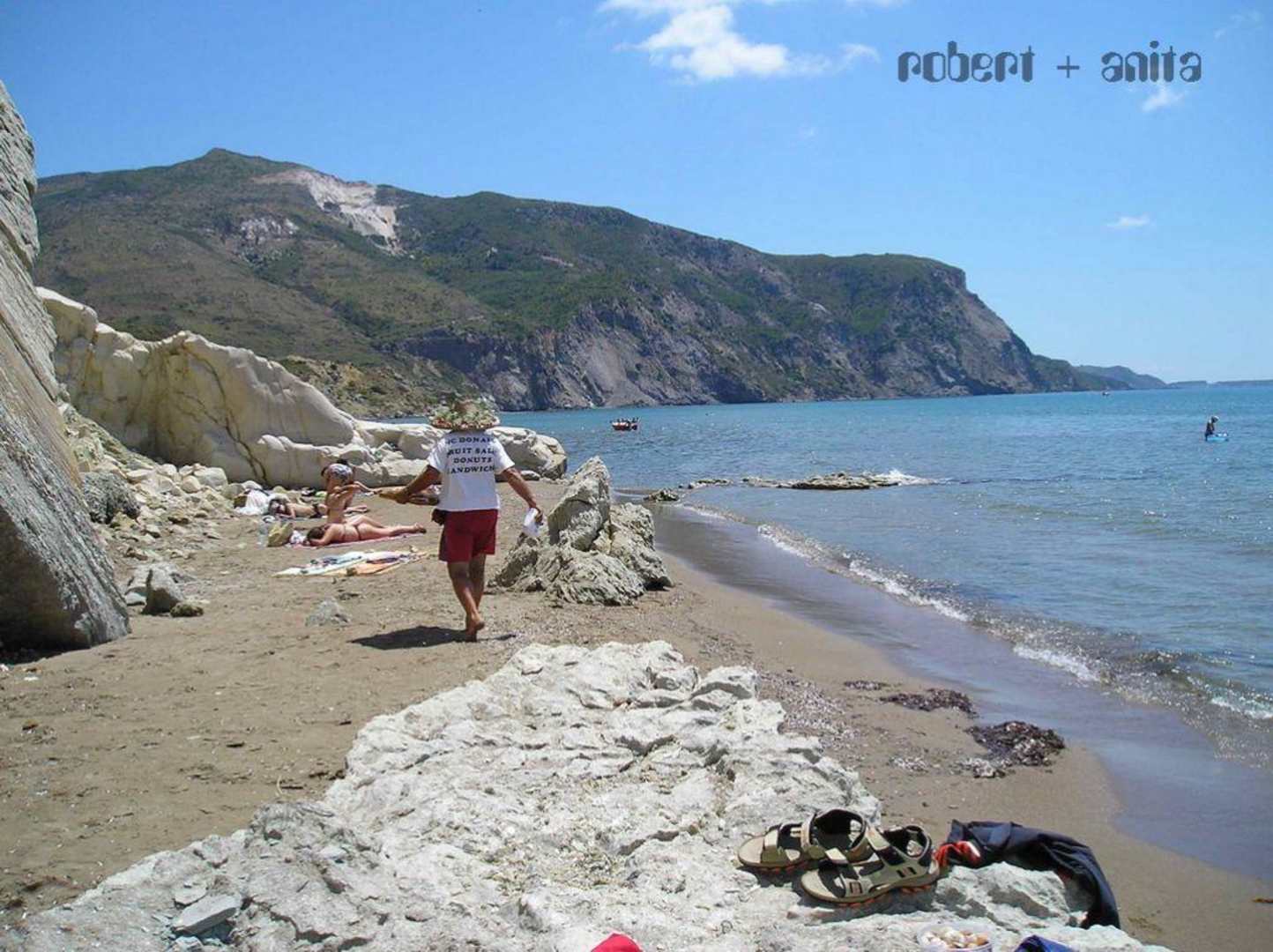 StrandserviceDer griechische Strandverkäufer drehr so 1-2 mal am Tag seine Runde mit Obst, Sandwiches und Donuts