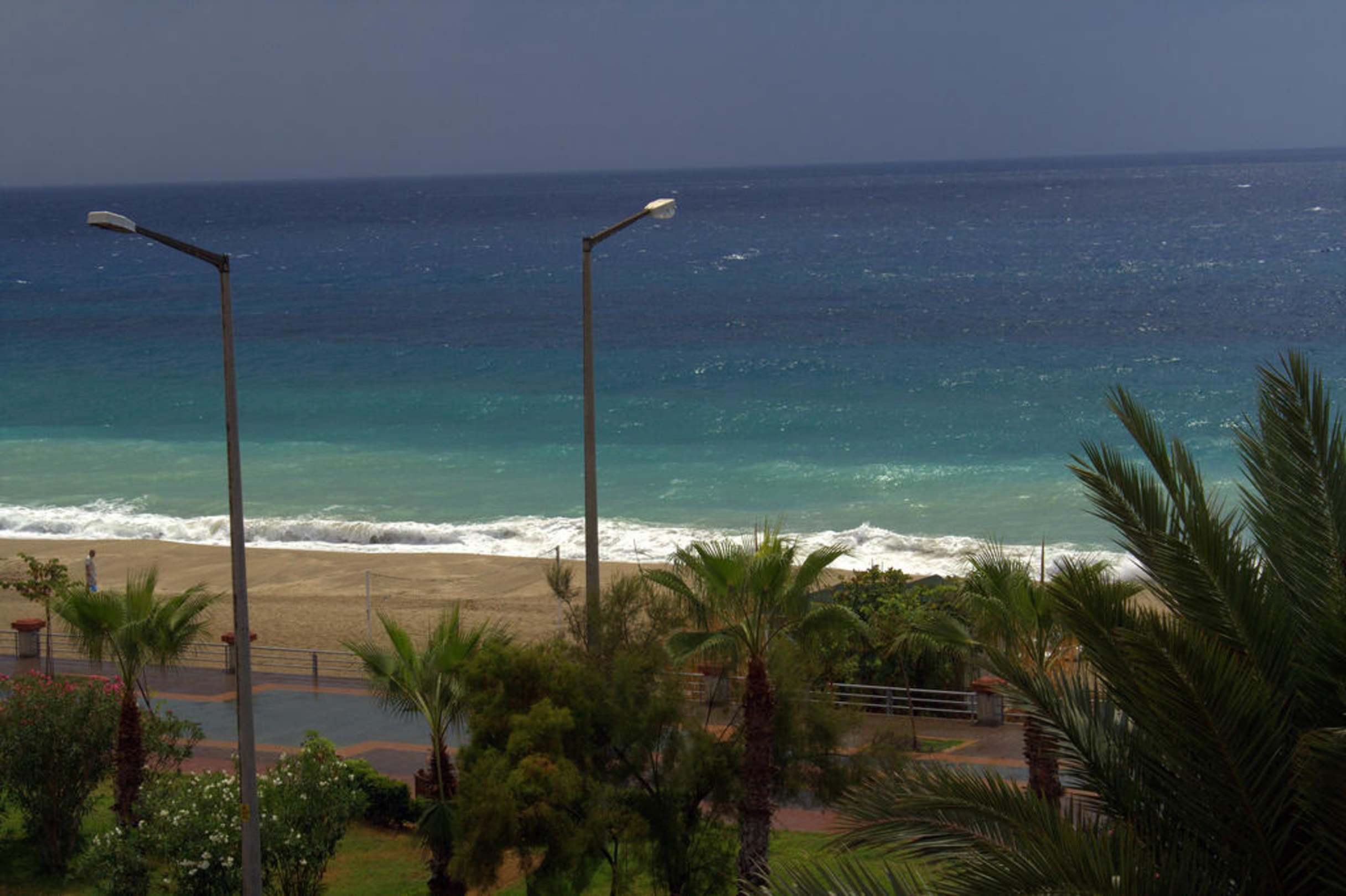 Widok z balkonu na plażę Kleopatra