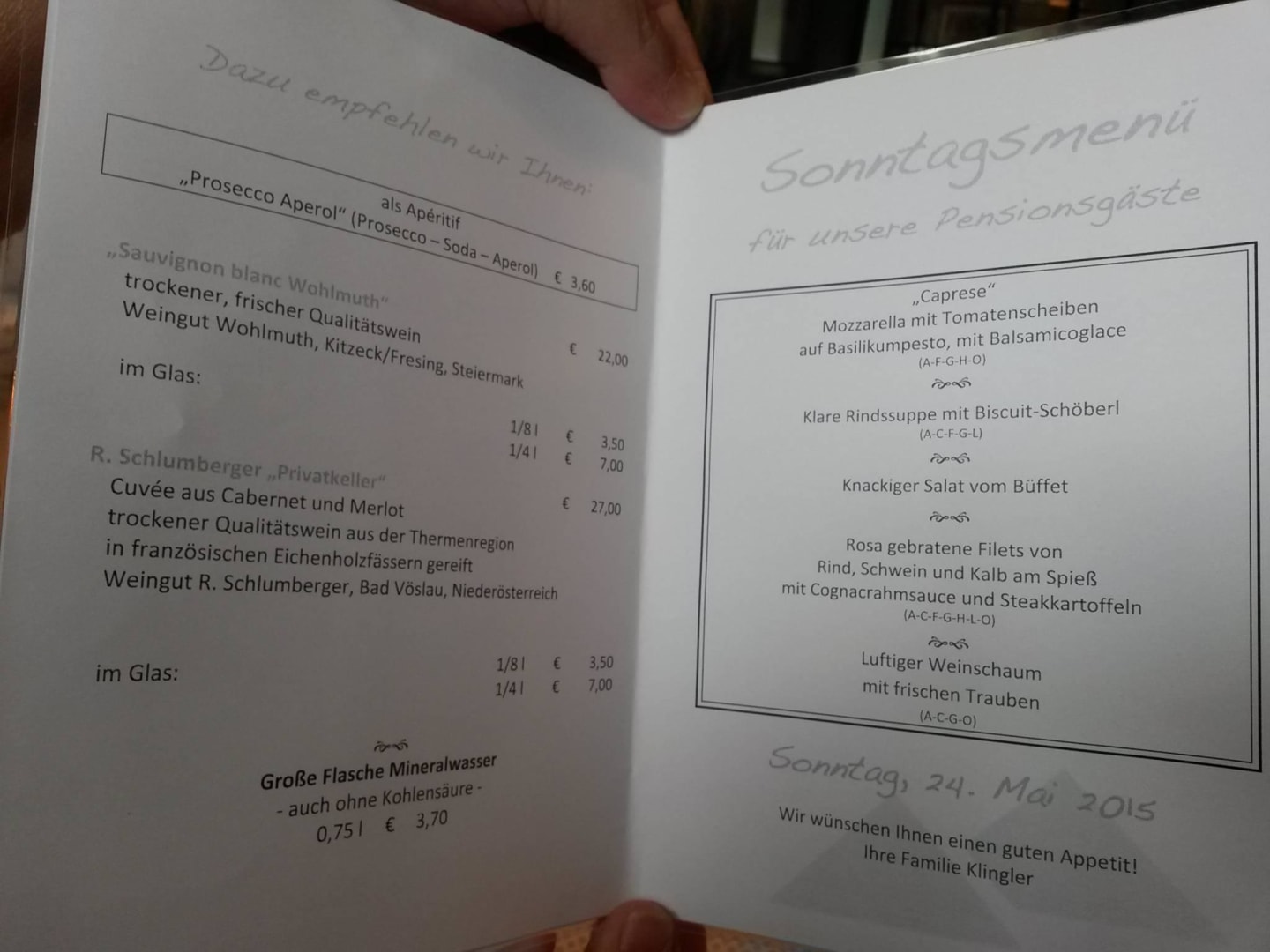 Speisekarte für Vorfreude