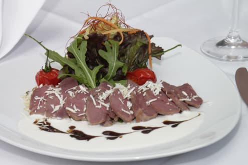 Schweinebäckle auf Linsensalat