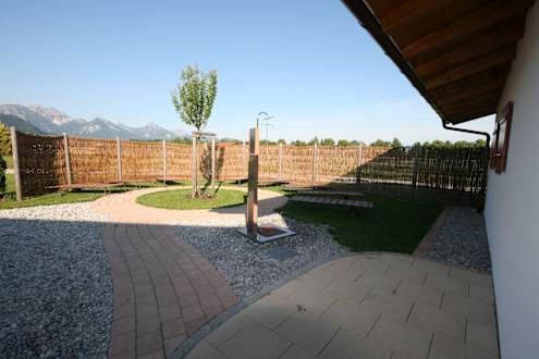 Der Aussenbereich der Aussensauna. Auch hier fehlt die Liebe zum Detail!!! Noch nicht mal eine Bank zum hinsetzen, von einem Abkühlbecken keine Spur.
