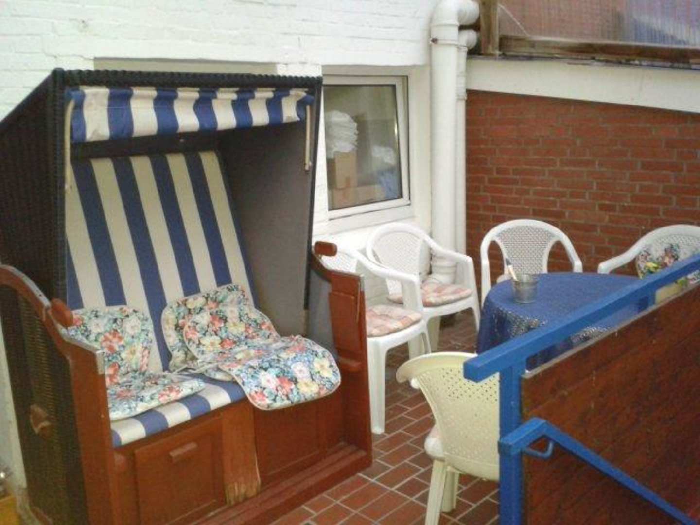 Strandkorb und Sitzmöglichkeiten überdacht