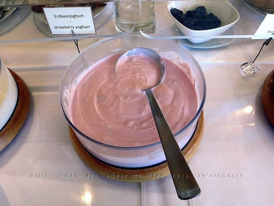 Ein Teil des Frühstücksbüffets: Erdbeerjoghurt