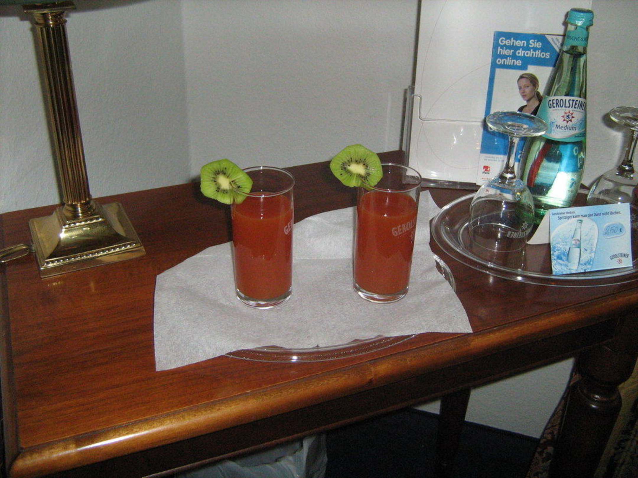 Schreibtisch mit Begrüßungsgetränken