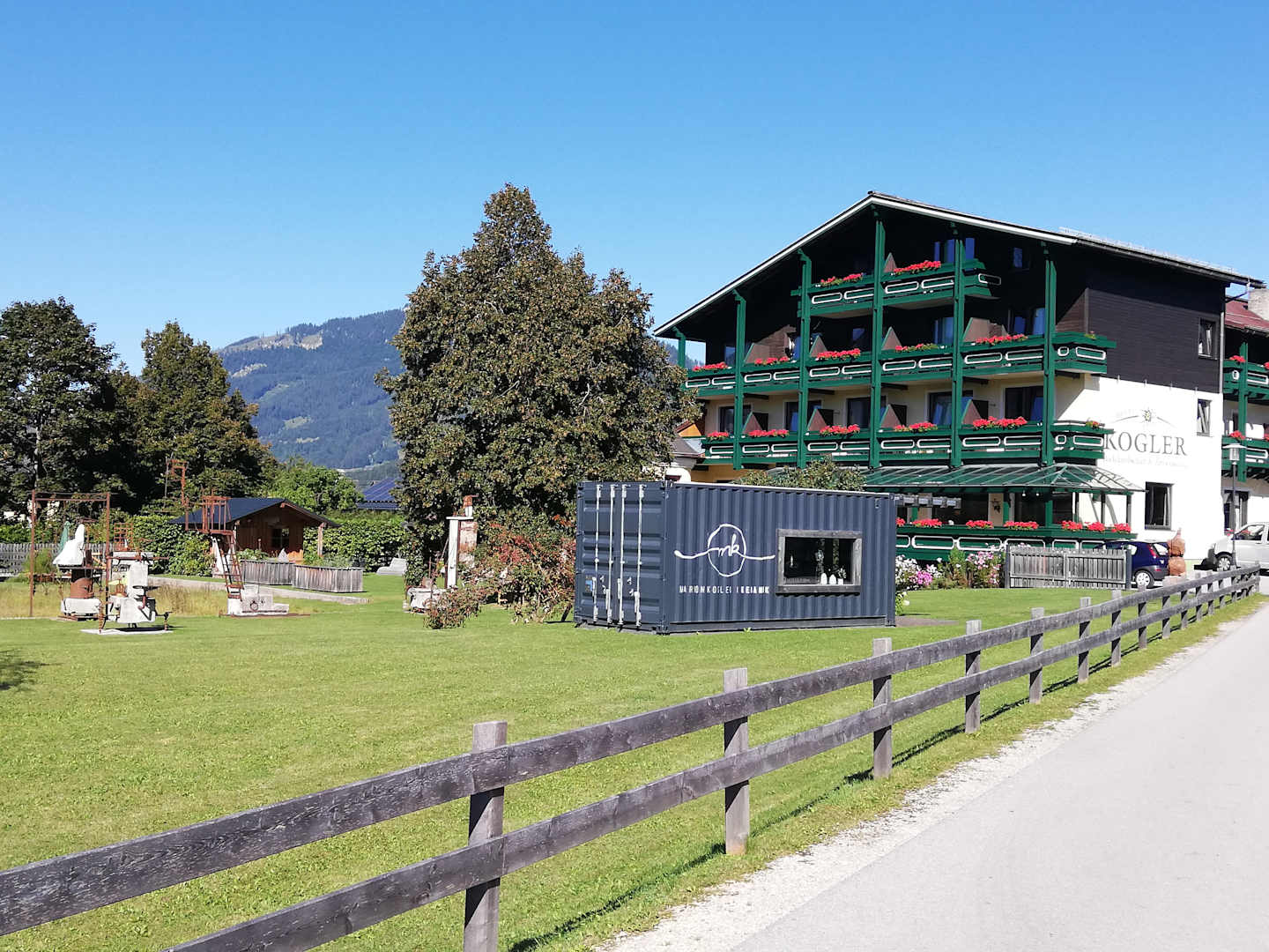 Der Garten mit dem "Keramik Container" der Chefin