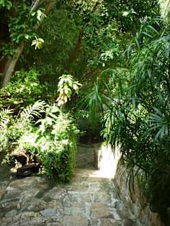 Weg durch den Garten zu den Bungalows