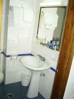 Sehr klein. Nicht im Bild eine kleine Badewanne. Ansonsten ganz OK.