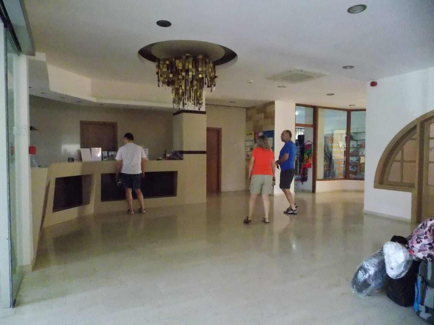 Der, der Dienst an der Rezeption hatte, musste auch den Minimarkt bedienen. Wenn Neuankömmlinge kamen, brauchte man nichts kaufen. Keine Chance, bedient zu werden.
