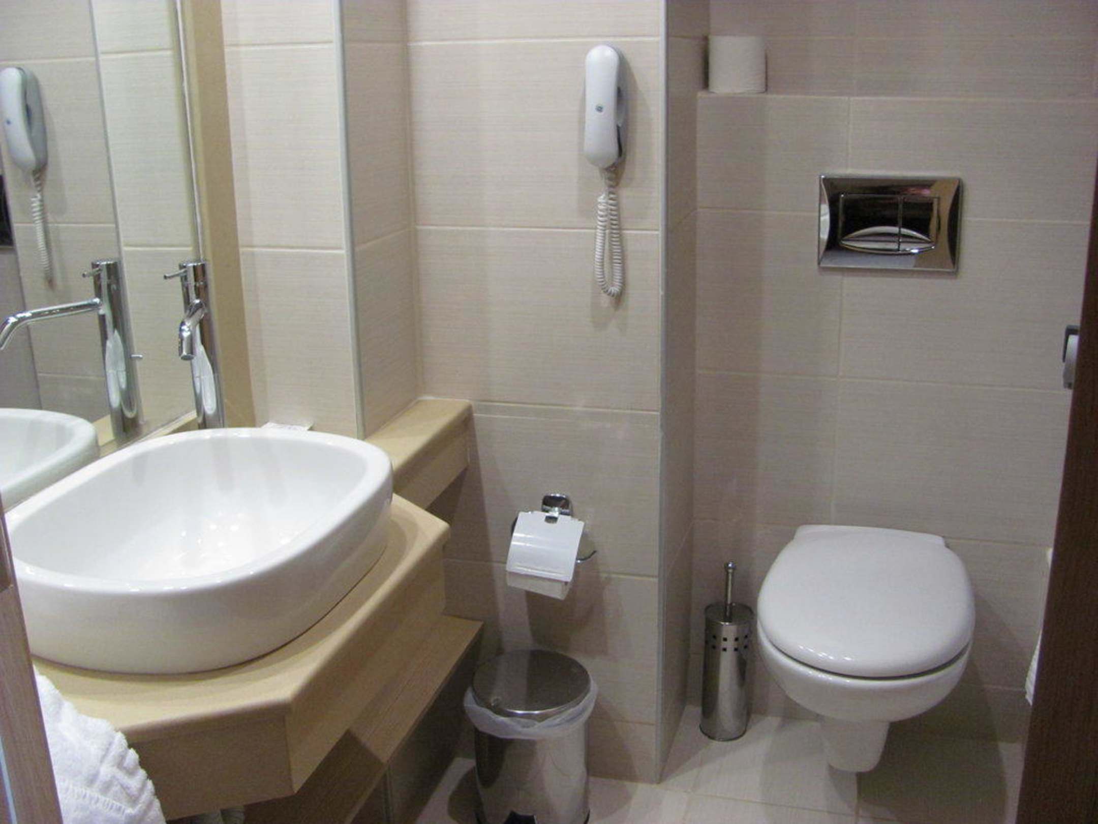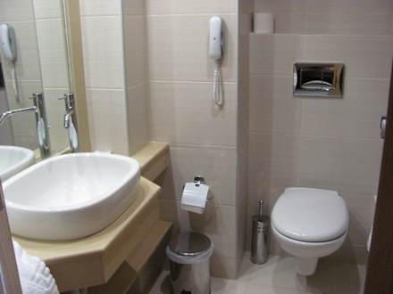 Badezimmer im Hotel Kolymbia Sky, sehr klein aber funktionell.