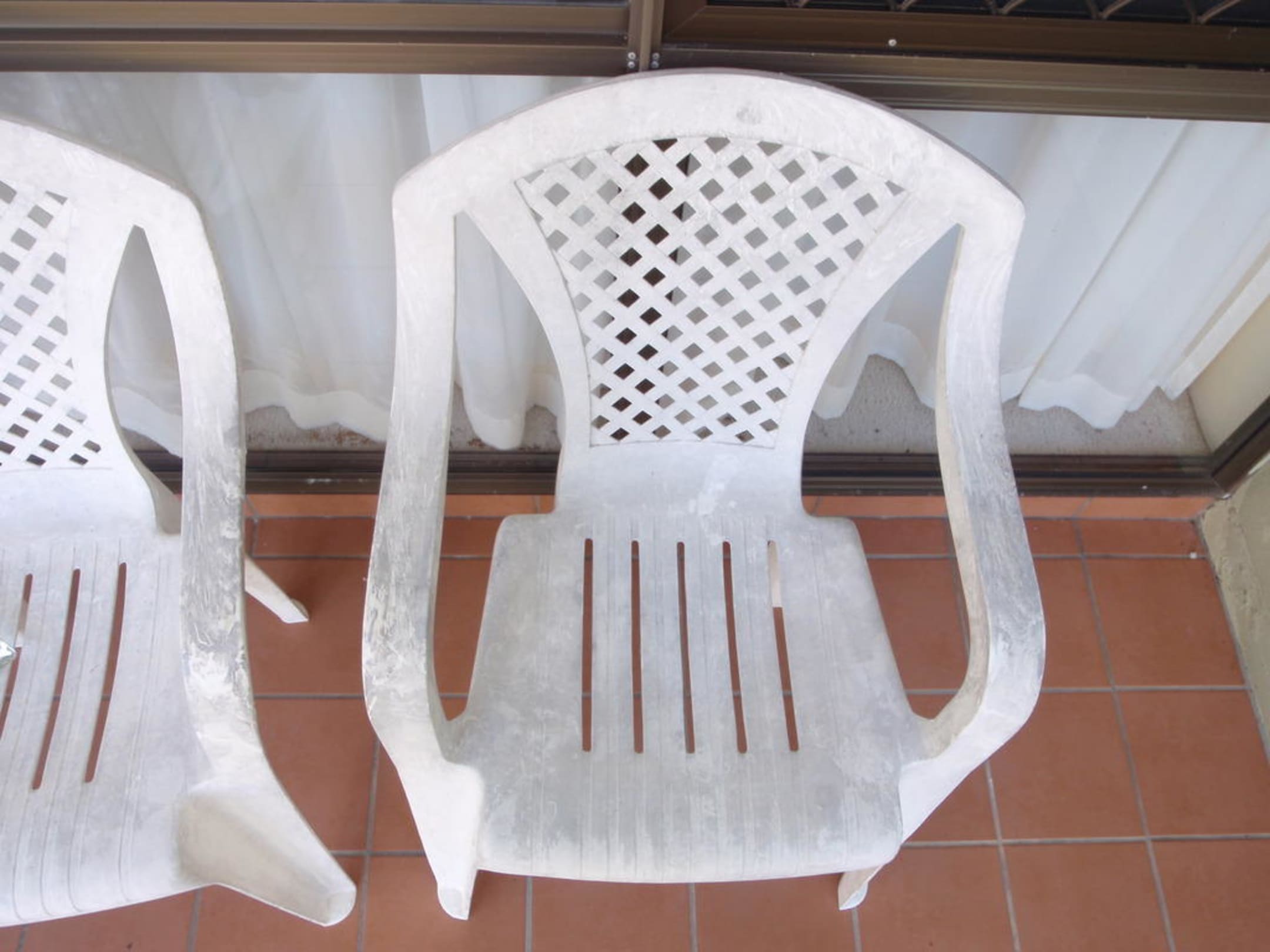 2 dreckige Stühle, nicht mehr. Das war die Terasse.