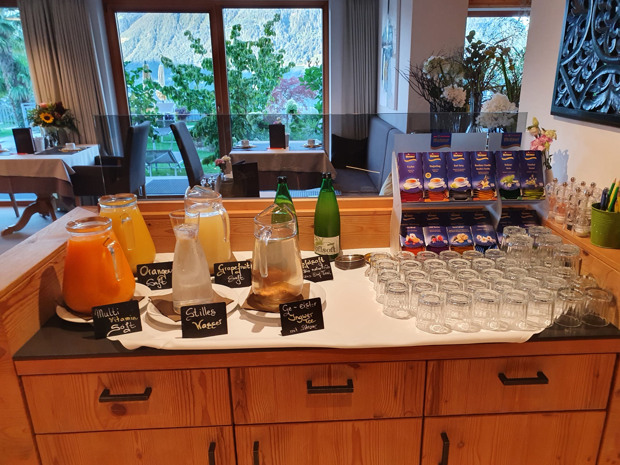 Frühstück. Tee- und Saftauswahl.