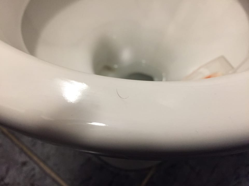 Schamhaare auf Toilette. Offensichtlich nicht geputzt