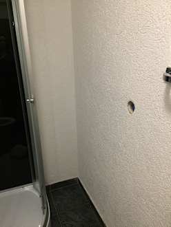 Dusche neben offener Stromdose