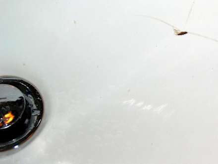 Das Foto ist Anfang Juli 2011 aufgenommen worden im Hotel Kreuz, es zeigt mein Waschbecken im viel zu dunklen Bad mit Loch und Rissen, an denen man sich schneiden kann. Die Toilette war ekelhaft verschmutzt.