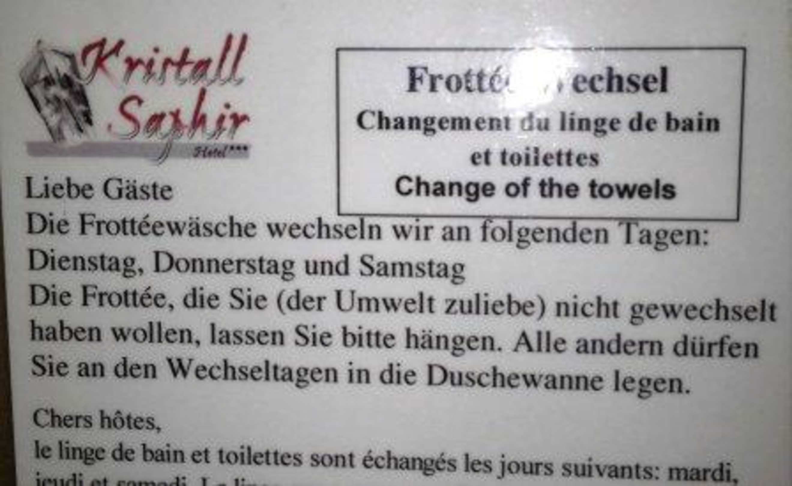 3 mal die Woche Handtuchwechsel
