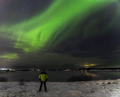 Me on the backyard of the hotel with the aurora
