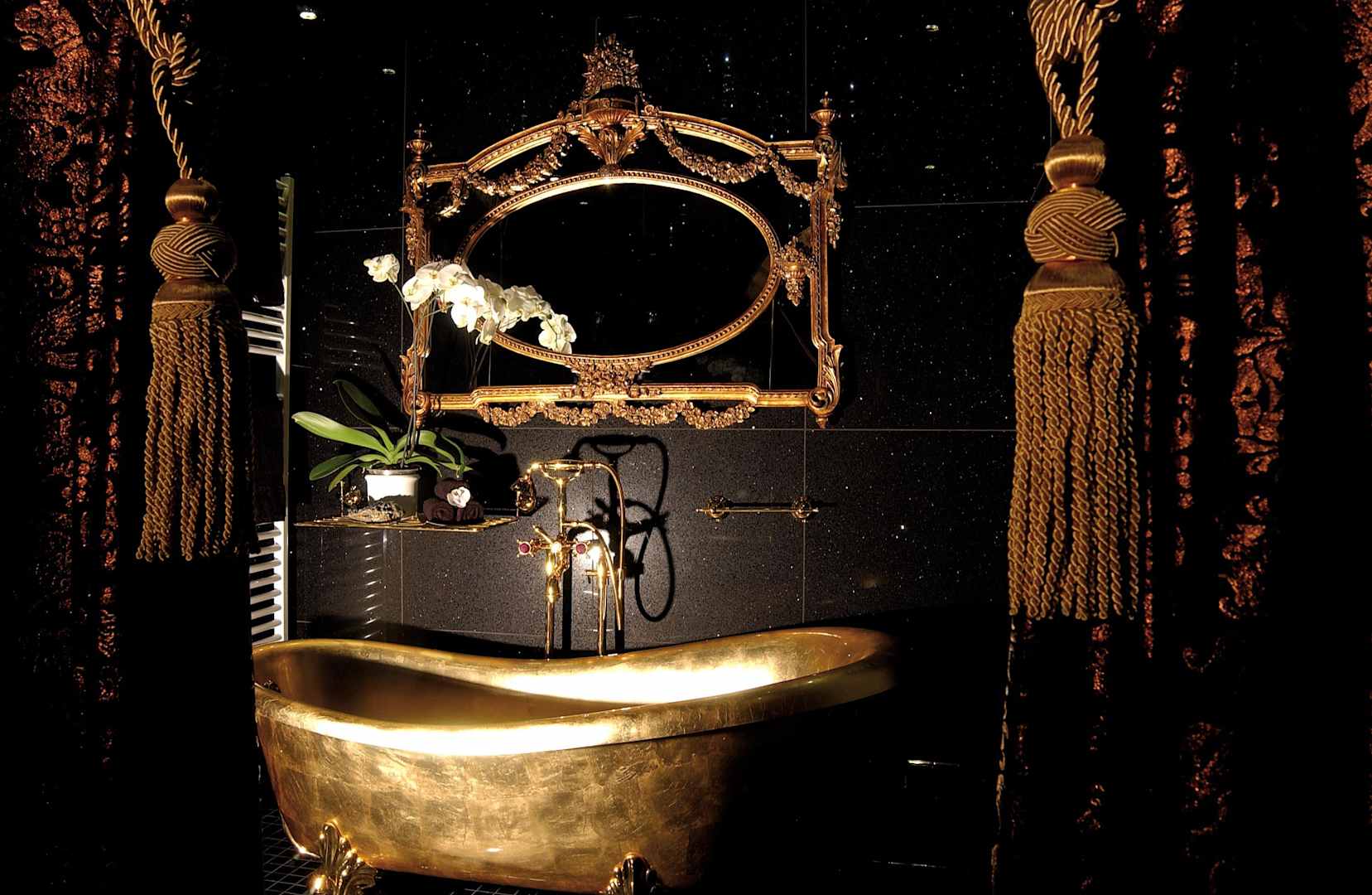Goldene Badewanne im Beauty und Massageraum