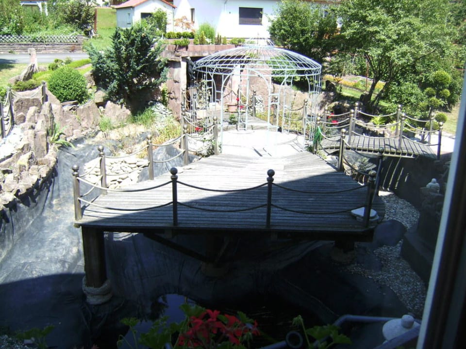 Leider war der Fischteich gerade in Reparatur und deshalb nicht in Betrieb, aber man kann sich gut vorstellen, wie hübsch es aussieht, wenn die Liegeterrasse benutzbar ist.