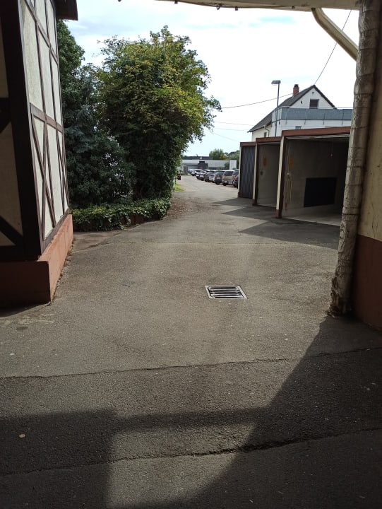 Im Hintergrund der Parkplatz