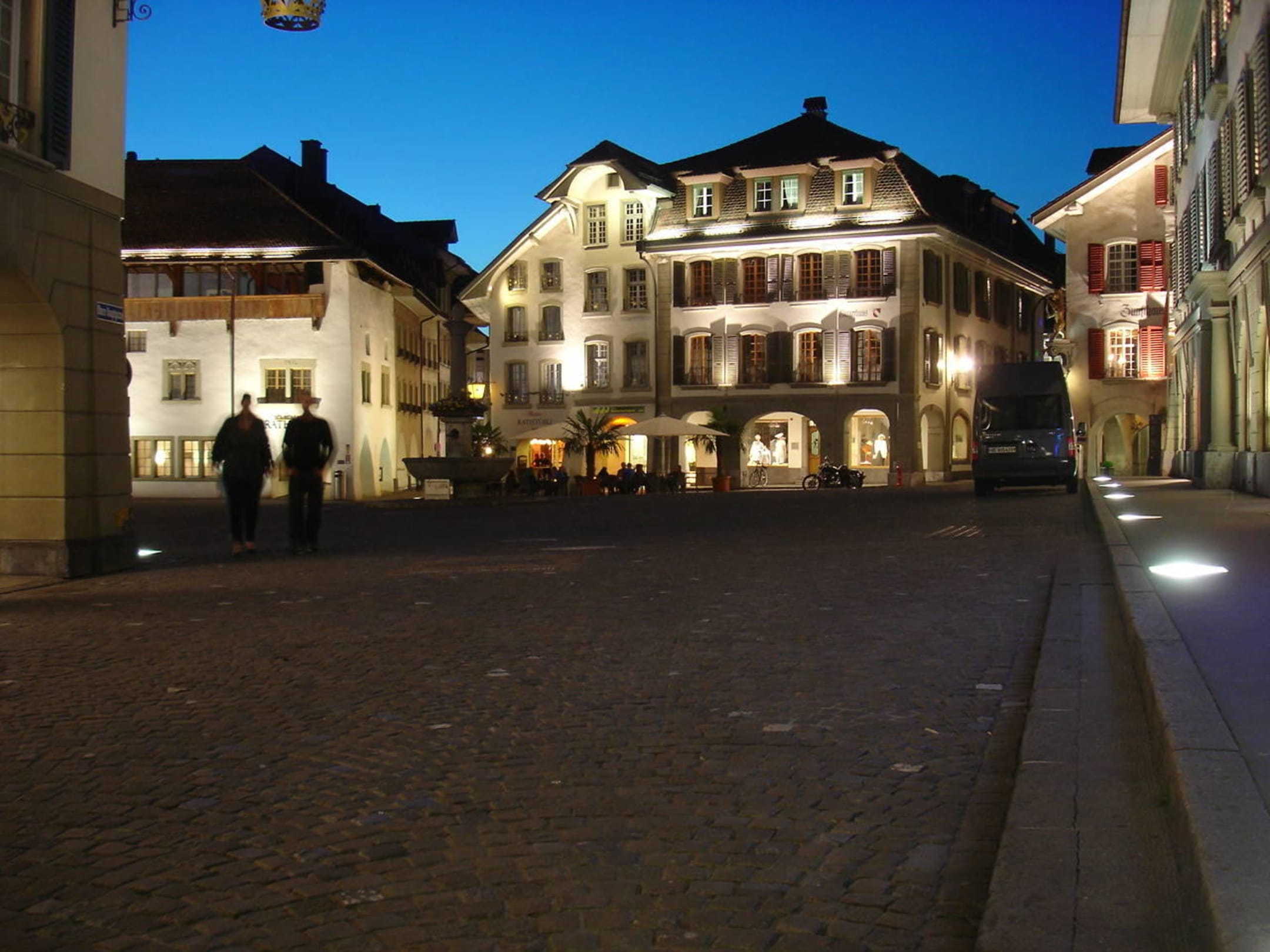 Blick vom Hoteleingang bei Nacht