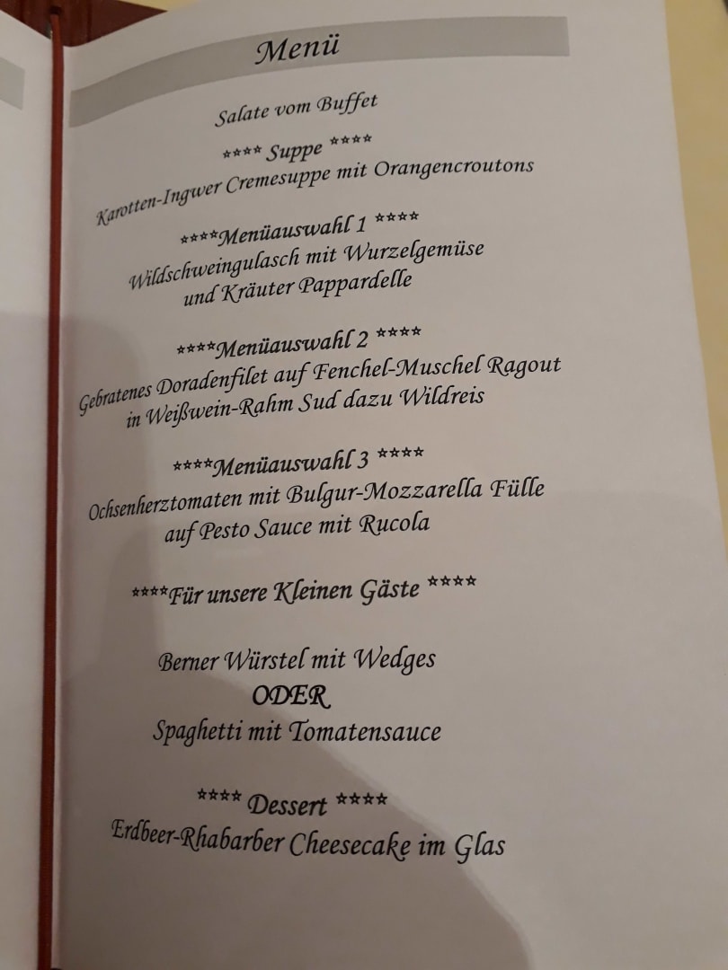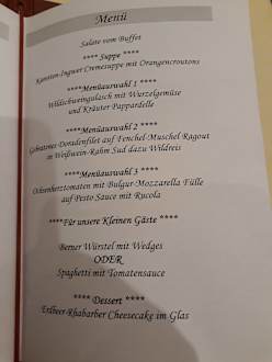 Menükarte Abendessen am Anreisetag