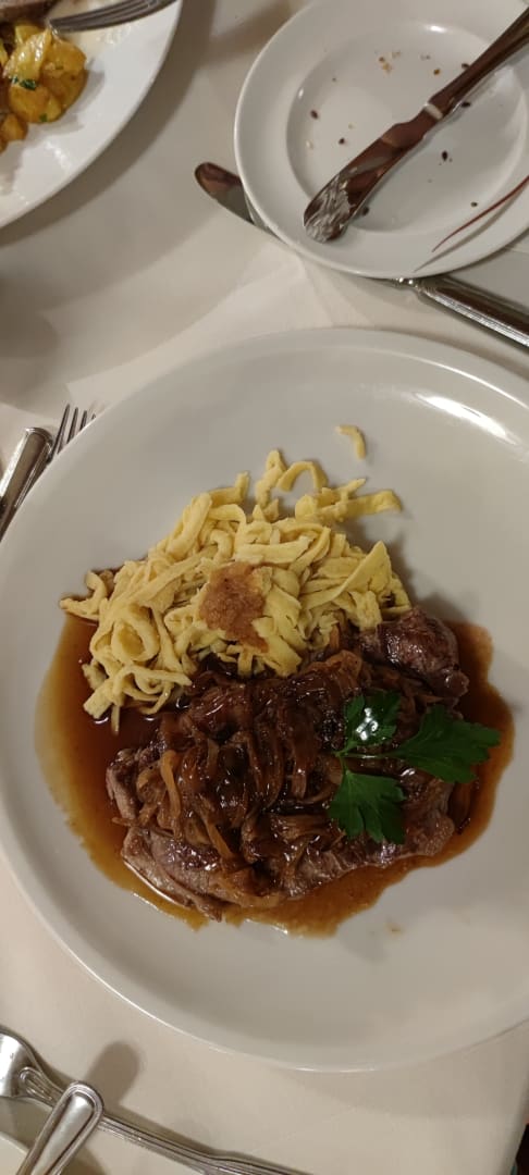 Sehr zarter Zwiebelrostbraten mit Spätzle