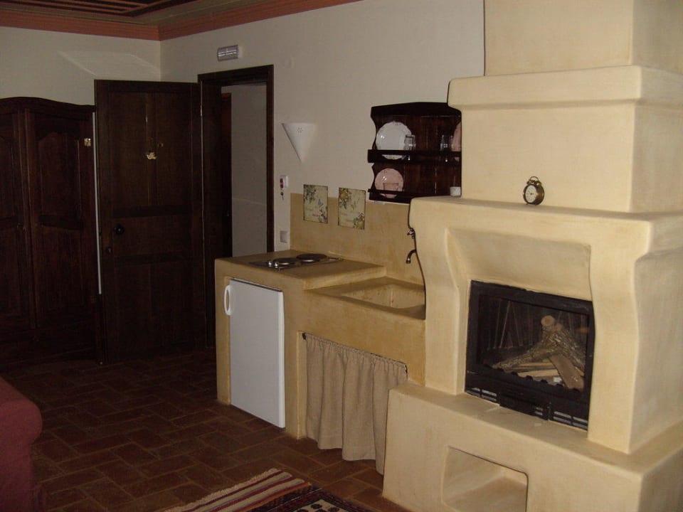 Küchenbreich mit Kamin im normalen Doppelzimmer, mit Balkon