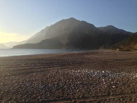 Strand mit Blick auf die Berge
