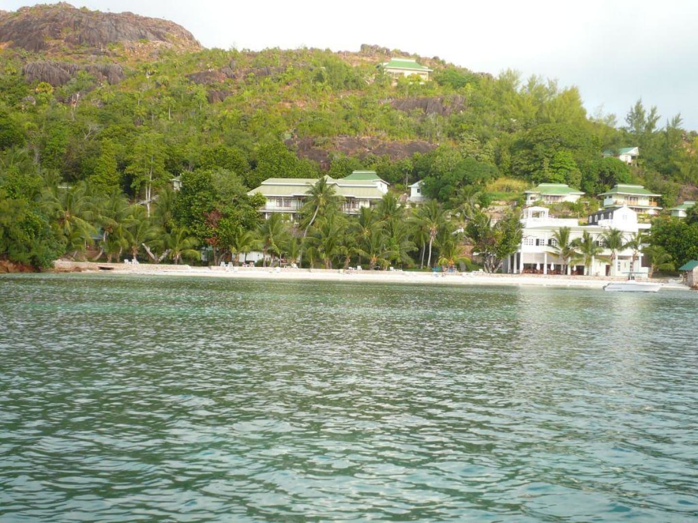 Blick vom Meer auf die Strandseite des Hotels
