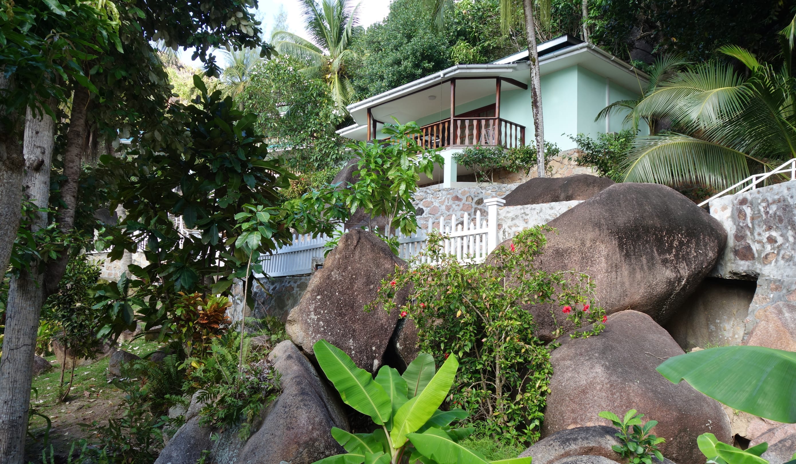 Zimmerunser Bungalow = Zimmer Nr. 6 namens "Villa Cerf" , viele Stufen führen in diese tolle Lage mit besonders viel Ruhe und Aussicht