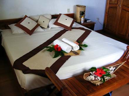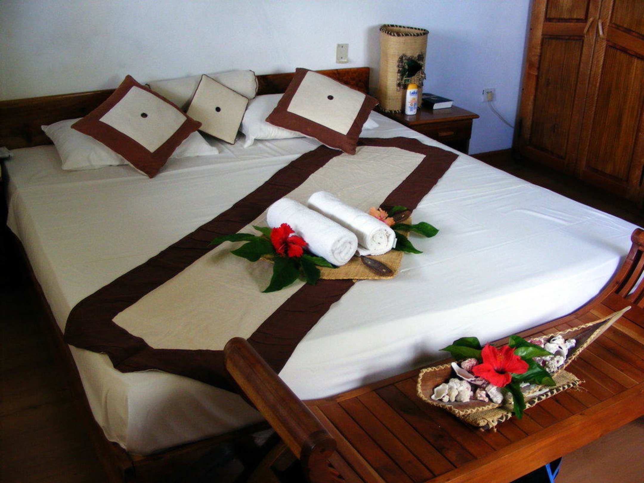 schön dekoriertes Bett