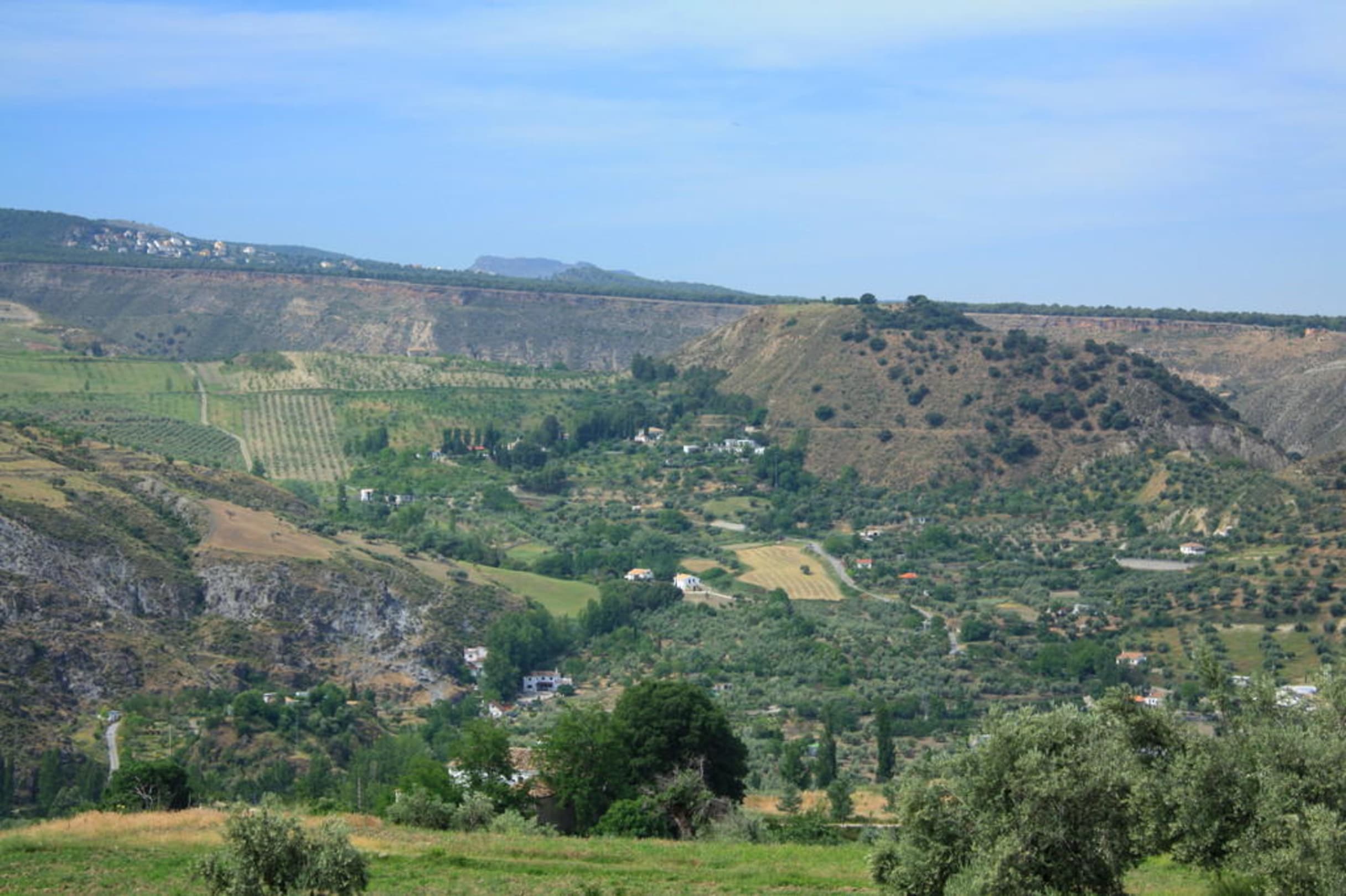 Blick zum Hotel aus Richtung Bergedie Aufnahme ist etwas gezoomt und zeigt das Hotel in der Bildmitte; das Foto verdeutlicht die Lage des Hotels