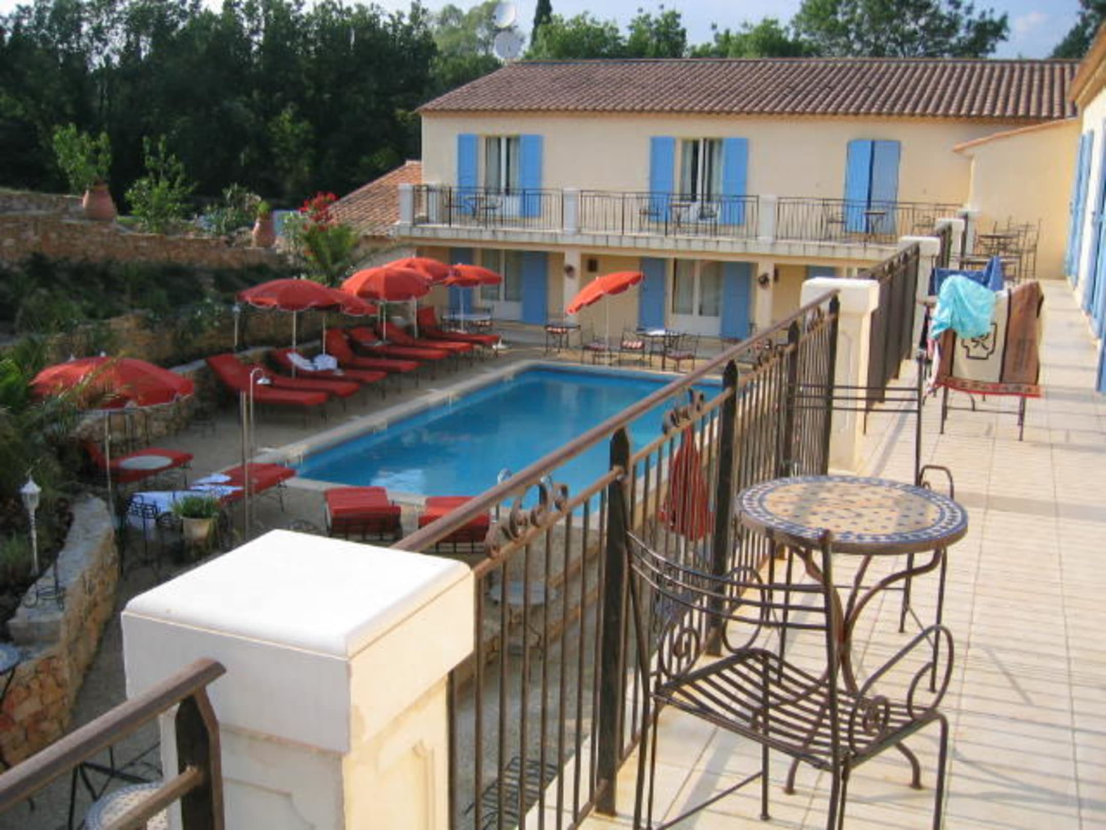 Blick vom Balkon auf den Innen hof mit PoolDas Hotel ist sehr süß und ruhig. Die Zimmer, z.T. mit Himmelbett, sind in einem Top- Zustand.