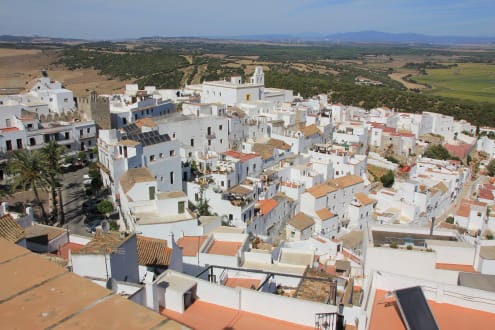 Ausblick auf Vejer von der Dachterrasse