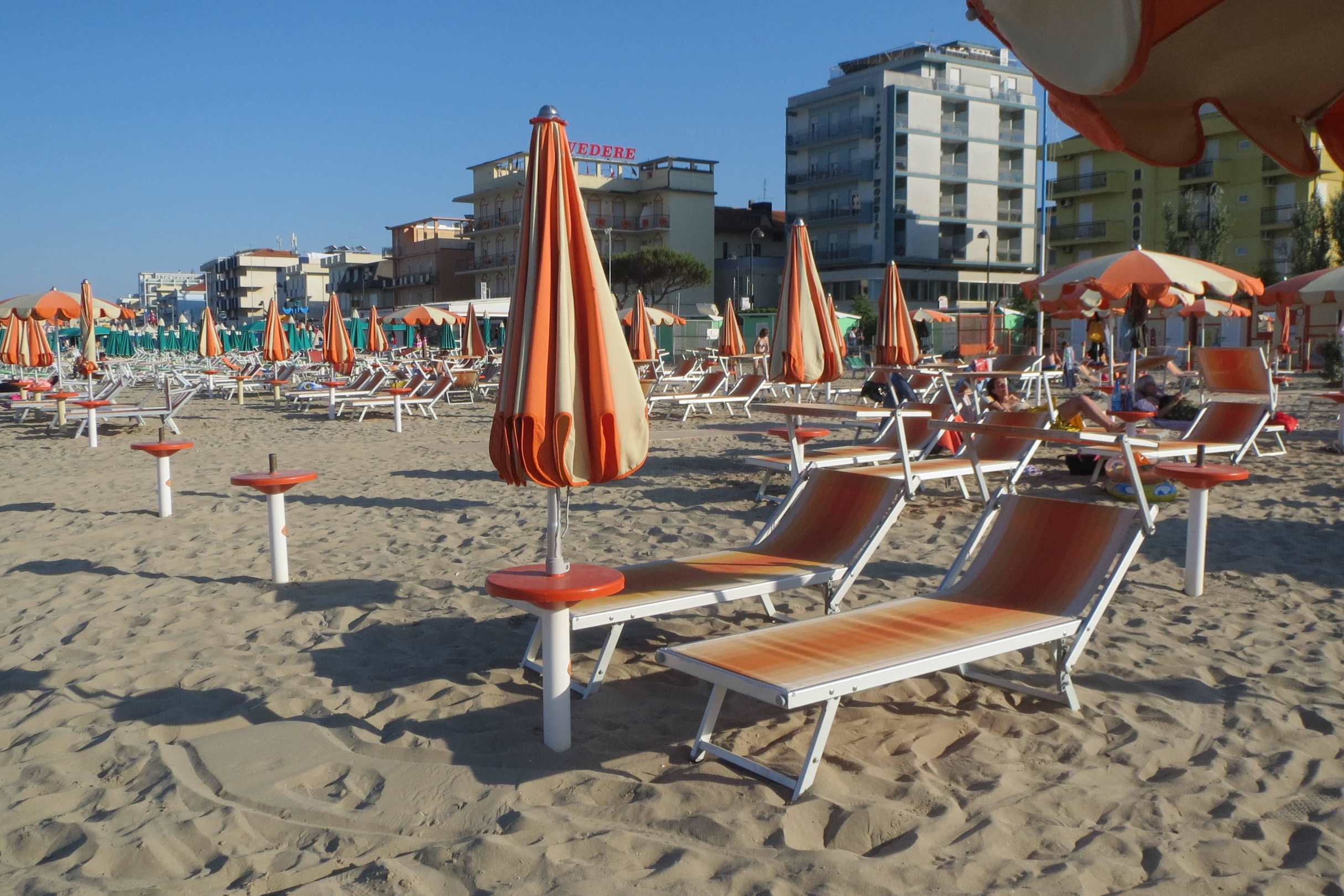 Pro Zimmer ein Sonnenschirm und zwei Liegestühle.. Hotel La Capinera