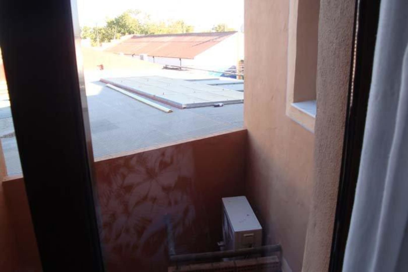In dem Lichtschacht befindet sich unter dem Schlafzimmerfenster das Klimagerät für nächtliche zusätzliche Ruhestörung