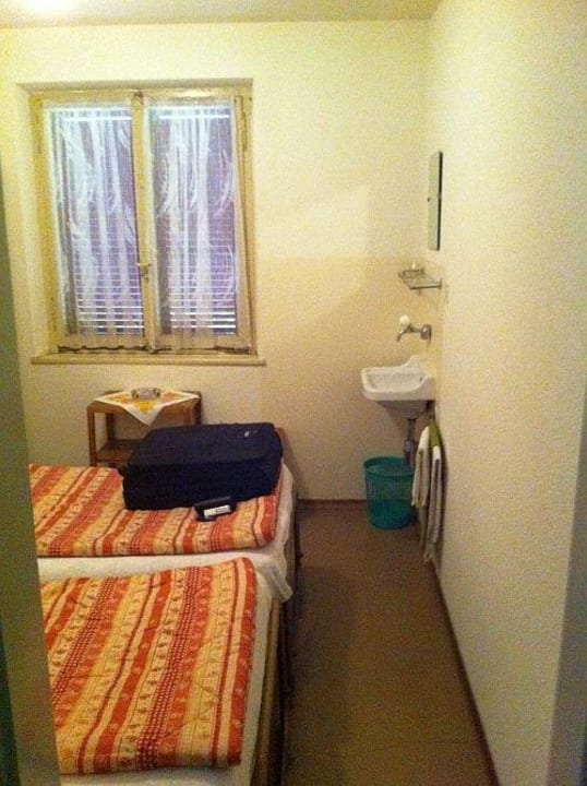Im Zimmer hat es nur ein Lavabo, keine Dusche im Zimmer. Das Zimmer ist sehr eng.