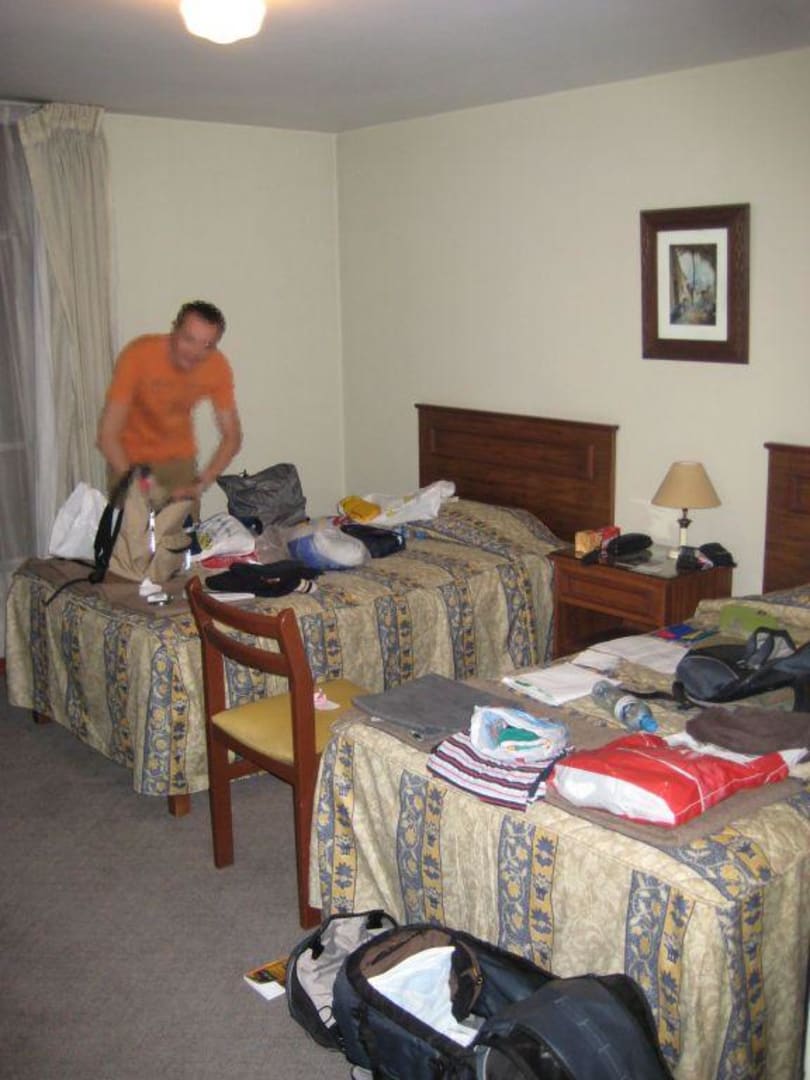 Unser Mehrbettzimmer bestand aus 2 großzügigen Schlafzimmern mit Bad. Das Bild zeigt eines davon, die Unordnung entstand dadurch, dass wir unser Gepäck für einen 2-tägigen Ausflug neu packen mussten.