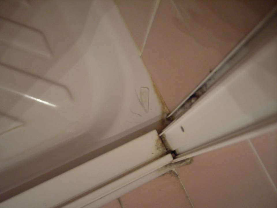 Duscheschmutzig, wurde nach dem letzten Gast nicht mehr geputzt, davon zeugen das angbrauchte Duschgel und die Glasscherbe in der Ecke