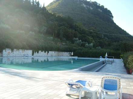 Die Poolanlage scheint neu gemacht und ist mit herrlichem Blick auf den La Rocca