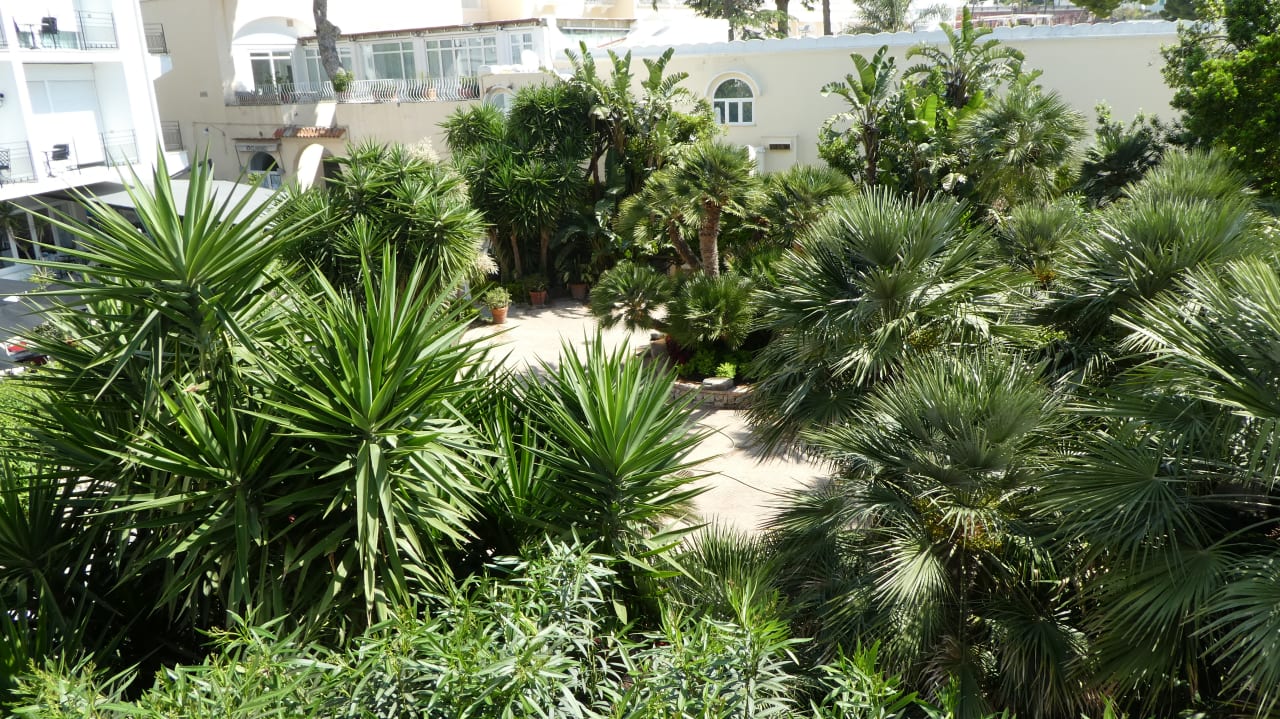 Blick vom Balkon in den Garten
