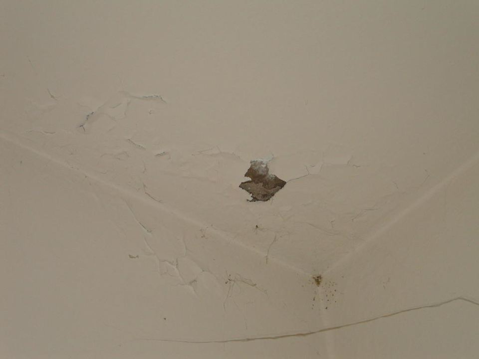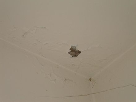 DeckenputzDeckenputz blättert ab. Das Zimmer war im Bereich der Vorhangstange auch voller Spinnweben.
